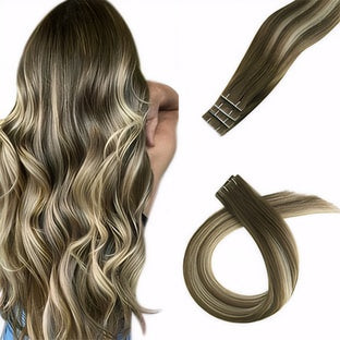 Virgin Injection Tape in Hair Extensions Balayage Ombre Brown with Blonde #4/8/27/4